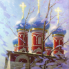 The central element of the composition are the domes, which seem to float in the sky, connecting the earth and the sky. The painting evokes a feeling of peace, faith and inspiration, conveying harmony and the grandeur of holiness in every stroke.