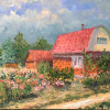 The painting "Summer House" takes the viewer to a cozy, sunny corner of the countryside, filled with warmth and peace. In the center of the composition is a small wooden house with a bright red roof, which seems to be drowning in the greenery of the garden and flowering flower beds. The walls of the house look warm, as if absorbing the rays of sunlight, reflecting the simplicity and charm of village life.
