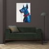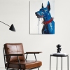 This striking oil painting on canvas is a powerful and unconventional portrait of a Doberman.
