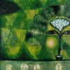 Vasily Prilepa's painting «A smile for Alice 3» is a continuation of an artistic dialogue with Carroll's world, executed in a deep, almost monochromatic green palette. The artist creates a mystical, symbolic image where nature and fantasy merge into a single whole, inviting the viewer to look into the subconscious.