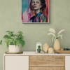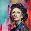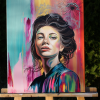 Maria Komzikova’s painting «Цветение души» is a vivid, bold, and deeply emotional portrait that explores the theme of inner beauty and the awakening of feelings. The artist combines a photographically precise depiction of the face with a dynamic abstract background, creating a powerful dialogue between reality and the inner state.