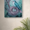 The painting explores the very essence of motherhood, care, and fragile hope. The nest is not just a structure made of twigs but a sacred space, a «cradle» of future life. The mother bird, frozen in a state of vigilant calm, embodies absolute devotion and patient waiting.