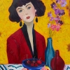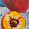 The painting «Girl with Peaches» conveys an atmosphere of tenderness and tranquility. The canvas depicts a young beauty with dark hair and deep dark green eyes. In front of her are juicy, sunlit peaches, a symbol of abundance, warmth, and sensuality. Her gaze reflects dreaminess and calmness, as if she is immersed in her thoughts and memories.