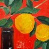 This original artwork, «lemons against a red wall», was created by contemporary Russian artist Elena Polishchuk and is available for purchase online.