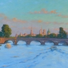 The painting "Evening on the Seine" conveys the romance and tranquility of Paris, enveloped in the soft evening twilight. A majestic bridge spanning the gently flowing Seine takes center stage. Beyond the bridge, the outlines of historic architecture and cathedral spires are visible, creating an atmosphere of harmony between urban elegance and history.