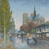 Booksellers on the Seine embankment in Paris with Notre Dame Cathedral in the background.
