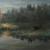 In the center of the composition, against the backdrop of a dense forest, you can see a small boat with a lone fisherman. His figure is barely noticeable among the soft shadows, but this indicates his fusion with the surrounding world - a person here is an addition to the natural harmony, and not the main character.