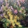 The painting "Lilac Blooms" conveys the charm of the spring awakening of nature. The central element of the composition is a spreading lilac bush, the entire crown of which is covered with a scattering of delicate purple and pink flowers. The artist's refined brushstrokes emphasize its airiness and lightness.