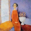 The composition is arranged to emphasize this atmosphere of waiting. The window, beyond which light, possibly melting snowy landscapes can be glimpsed, becomes a symbol of the transition from winter to spring. The flowers in the vase, with their soft pastel shades, echo the mood of the painting, adding a note of freshness and fragile beauty.