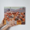 The main focus of the work is on the variety of roofs, forming a picturesque sea of terracotta, gray, and ochre shades. The play of shapes and colors creates a sense of dynamism, as if the buildings are breathing and living their own lives. The elegant spire of the cathedral, rising above the tiled mosaic, gives the composition a vertical axis and emphasizes the historical significance of this place.