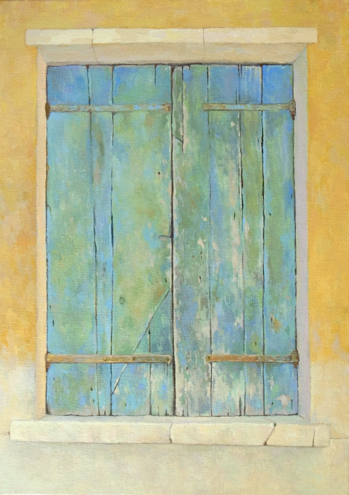 Tatyana Koltsova’s painting «Once a turquoise window» is a poignant reflection on time, memory, and the traces it leaves behind. The artist depicts an old window that was once turquoise, having witnessed many events. It is not just window shutters but a portal to the past, where every crack and every worn spot holds echoes of days gone by.
