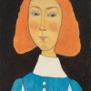 The painting by Tatyana Koltsova, «A girl with pink hair», is a cheerful and memorable portrait in which the artist skillfully combines simplicity of form with expressiveness of the image. At the center of the canvas is a young girl whose bright orange, almost pink hair framing her face immediately draws attention. This bold detail gives the image individuality and a certain daring.