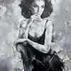 A monochrome palette of shades of gray, black and white enhances the lyrical mood of the work and creates a nostalgic effect. The artist uses textured brushstrokes that add liveliness and dynamics to the portrait, as if intertwining feelings with memories.