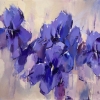 The painting "Irises" is filled with lightness and poetic beauty. The center of attention is the graceful purple irises, which are presented in a painterly manner with broad brushstrokes. The flowers, as if floating in space, come to life thanks to the various shades of blue, lilac and purple, conveying their depth and freshness.