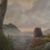 In the background, the outlines of hills or islands can be seen, shrouded in a light mist, which adds depth to the painting. The entire composition is imbued with melancholy and contemplation. «Луна скрывается за облаками» is not just a depiction of nature but rather an emotional state conveyed through the interplay of light, color, and form. This painting encourages the viewer to reflect on the passage of time, changes of state, and the beauty of fleeting moments.