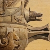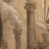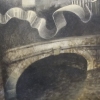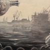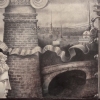 The city’s images are organically integrated into the composition: majestic bridges symbolizing the connection of eras, silhouettes of industrial enterprises with smoke clouds embodying industrialization and progress. A winged figure, reminiscent of a mermaid or the Nike of Samothrace, gazes upon the city from above, as if its guardian. Birds soaring in the sky add dynamism to the composition and symbolize freedom—perhaps long-awaited but paid for at a high price.