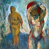 The painting "Bathers" embodies the dynamics of movement, emancipation and naturalness of the human body. Made with energetic brushstrokes, it conveys a feeling of the warmth of a sunny day and the sound of water surrounding the scene. Two figures of women - one in the foreground, the other in the distance - seem to be captured in the moment of enjoying the moment in nature.