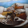The painting “Dolce Vita” takes us to a world of sophistication, refinement and sensual enjoyment of life. The central theme of the work is hands adorned with rings and bracelets, masterfully touching graceful details reminiscent of wood patterns or curved metal structures. Each movement of the hands seems thoughtful and sensual, as if symbolizing harmony and enjoyment of the moment.