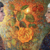 The warm palette of the painting, based on gold, orange and green shades, fills the work with radiance and vitality. The flower surrounded by female figures evokes an association with the birth of something new and pure, perhaps with renewal or a symbolic awakening of Venus - the goddess of love and beauty.