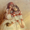 The painting "Girlfriends" fills the viewer with warmth, sincerity and spiritual closeness of two friends. Two girls in traditional Russian costumes are depicted in a moment of quiet communication, full of trust and harmony. Their peaceful faces, slight tilts of their heads and modest posture create an atmosphere of friendly support and mutual understanding.