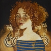A work from the series "Colombina." Created using a unique technique developed by me, with an adapted sgraffito method. The surface is covered with a levkas, then with transparent oil pigments; after that, the paint layer is scraped layer by layer to create the image. At present, there are no equivalents to this technique in the world.