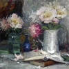 In the foreground is an open book lying next to another, closed one. This element enlivens the composition, adding a philosophical subtext, a reference to reflections or memories, as if this still life is a moment of silence captured by the author.