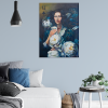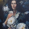 The Queen of Spades has long symbolized intellect, independence, and inner power. In this painting, she becomes a modern muse — strong yet vulnerable, calm yet enigmatic. The playing cards floating around her evoke destiny and chance, while the white peonies embody beauty, wisdom, and spiritual clarity.