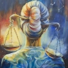 The artwork feels contemplative, powerful, and poetic. It transforms the Libra zodiac sign into a visual meditation on balance between emotion and reason, light and darkness, the inner world and the cosmos.