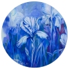 🌸 Blue Iris Floral Painting – Round Acrylic Wall Art. Canvas on cardboard.