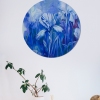 The round format and cool color harmony combine to create a soothing visual experience, ideal for spaces designed for rest and reflection.