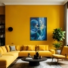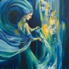 The flowing composition creates a circular rhythm, as the figure’s sweeping hair echoes the movement of waves, visually merging her presence with the surrounding space. The water dissolves into light and sparkling droplets, suggesting the connection between the earthly and the cosmic, between emotion and intellect.
