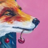 The fox is rendered with expressive, layered brushstrokes, capturing the softness and richness of its fur