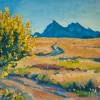 The clear blue sky emphasizes the feeling of vastness and freedom. The painting literally breathes summer heat and the anticipation of adventure. The title «Shall we go?» sets a dynamic tone: the road leading into the mountains seems to call the viewer to leave the path and head toward new horizons. This work is about a moment of choice, the anticipation of a journey, and the beauty of the surrounding world.