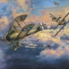 The painting belongs to the Aviation Art genre (there is no Russian name for this genre yet).