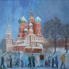 Under the miraculous cover — this title was chosen deliberately. The painting depicts the Cathedral of the Intercession of the Theotokos, located on Red Square in Moscow. It unites eleven churches (chapels), some of which are dedicated to saints whose feast days coincided with decisive battles for Kazan.