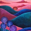 The third part of the triptych from the series "Чудо-юдные обитатели и там, где они живут," titled «Magic Hills», completes the amazing journey begun in the works «Hen at Dawn» and «Goose in Bloom». While the first two paintings told stories about bright, distinctive characters, this piece immerses us in their fairy-tale home—a place full of magic, silence, and incredible beauty.