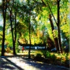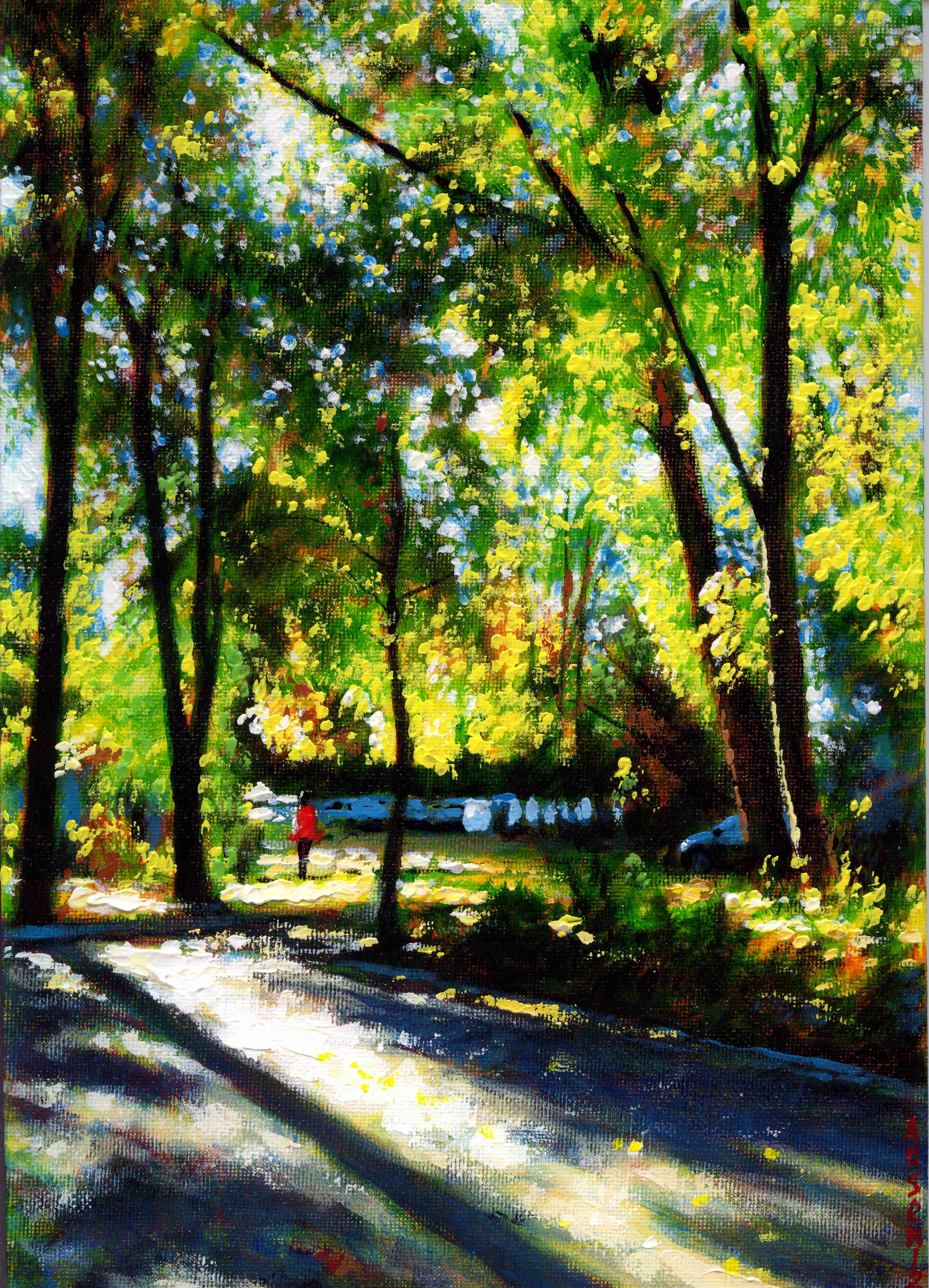My paintings are so conceived that when even a drop of light hits the paintings, the light reflected is doubled. The strength of the color of the paints and the special technique creates the illusion that the light comes from within the painting.
