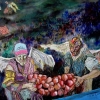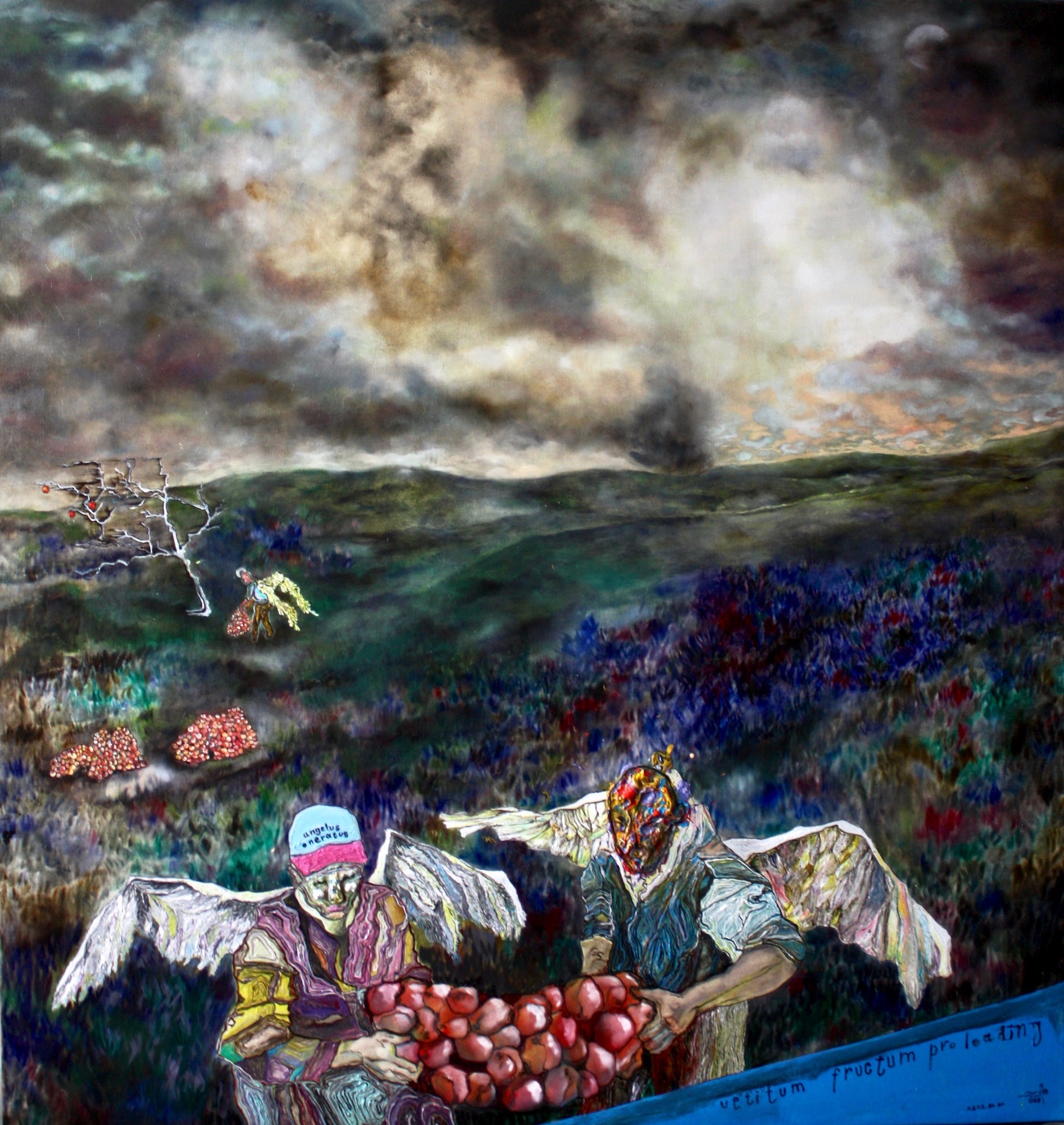 The painting reveals to us the autumn harvest season in the garden of «Eden». We see the angel-harvesters caught in the midst of their seasonal work, gathering the paradise fruits.