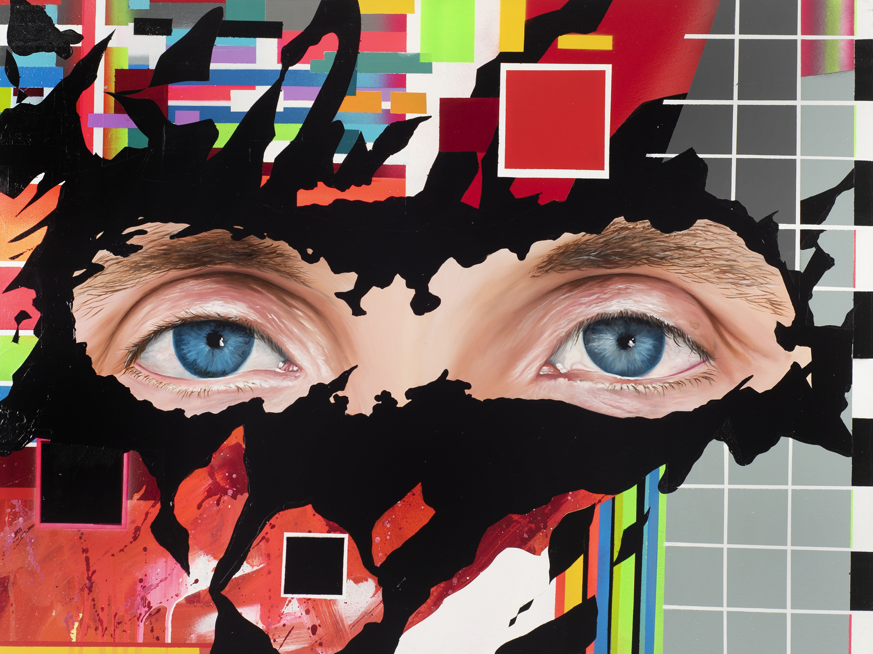 At the center of the composition are the eyes. Not as a portrait detail, but as a symbol of the main channel of perception for modern humans. Through the gaze, terabytes of visual content, informational noise, and digital images pass daily, subtly shaping thought, reactions, and states of consciousness.