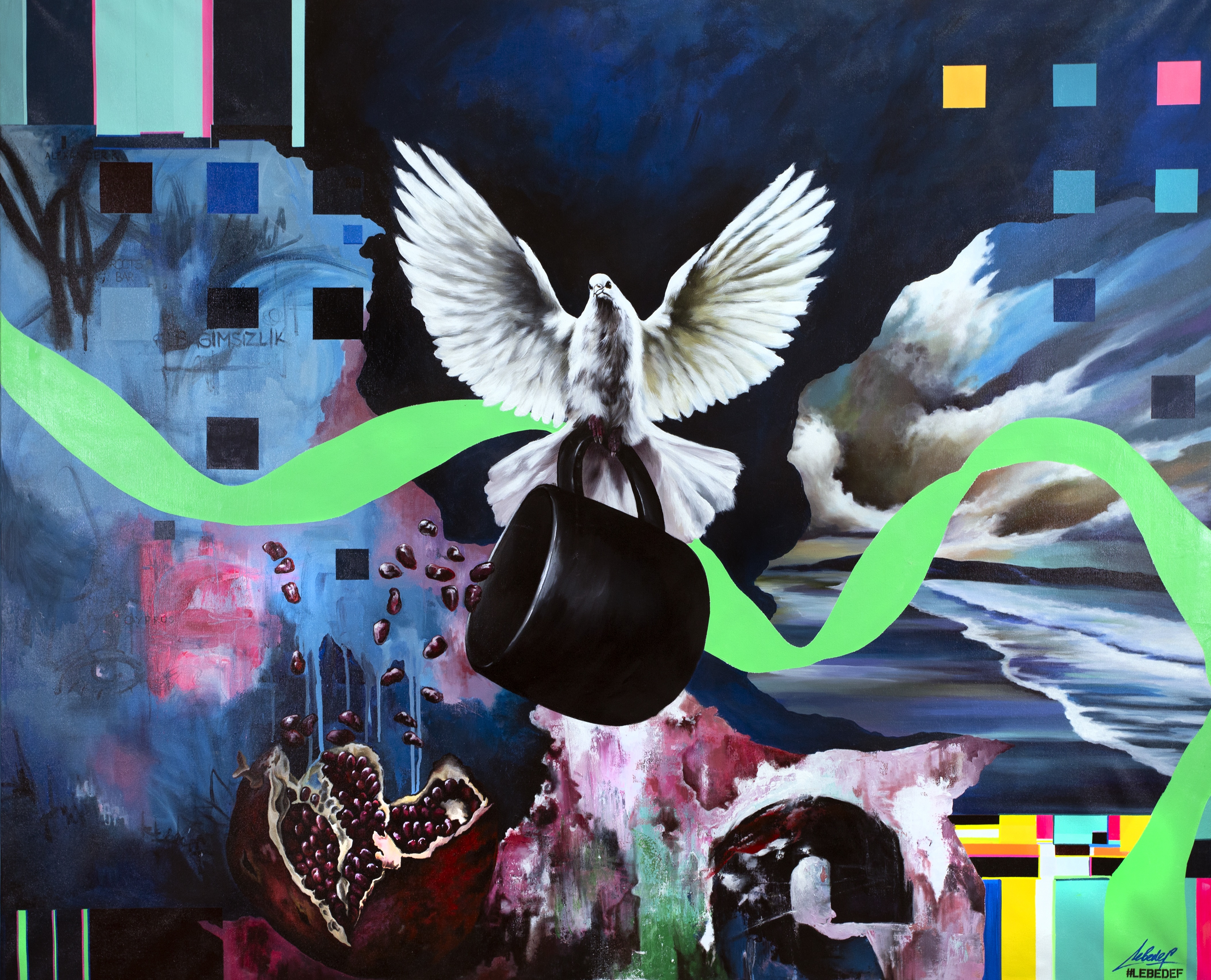 This is a rare artistic experience in which the history of an entire island is captured on a single canvas. The composition intertwines symbols from different eras, the tension between division and the aspiration for unity, memory and hope. The word “Independence,” hidden within the work and duplicated in Turkish (bağımsızlık), becomes the key to interpreting the painting — not as a political slogan, but as an inner state.