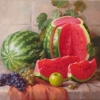 Watermelon – a symbol of summer and a favorite treat for many people. In heraldic traditions, the watermelon, due to the large number of seeds inside, is considered a symbol of fertility and a bountiful harvest. Enjoy your viewing and happy shopping, lovers of visual art! All my paintings come with a certificate of authenticity.
