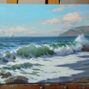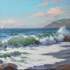 Гора Аю-Даг (570 м) - Медведь - гора. Является одним из символов Крыма на берегу Чёрного моря. Легенда гласит. Утомленный долгими странствиями, медведь наклонился к морю, чтобы напиться воды. Пил долго и жадно, да так по велению морского бога и застыл, окаменев и превратившись в огромную гору. И лежит старый медведь на берегу уже тысячи лет. Окаменело его могучее тело. Мощные бока превратились в отвесные пропасти, высокая спина стала вершиной горы, достигающей облаков, голова сделалась острой скалой, густая шерсть обратилась в дремучий лес. Старый вожак-медведь стал Медведь-горою. Уважаемые любители изобразительного искусства на моей страничке вы можете посмотреть ещё больше работ, маленьких и больших. Приятного просмотра и удачных приобретений!