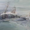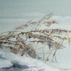 The color palette of the painting is built on nuances: delicate pearl-gray, cool bluish, and lilac shades create a sense of crystalline purity. Dry reeds breaking through the snowdrifts are the only vertical element disrupting the horizontal serenity of the landscape. Skrynnikov conveys the texture of the ice with remarkable precision: its transparency, cracks, and fragility.