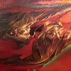 The painting depicts a composition of sunflower leaves and bright, fiery light, symbolizing the drama and tension of the development of international events at the beginning of 2022.