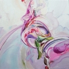 The painting is done in acrylic on linen canvas, specifically for participation in the VII MOSCOW SALON OF ABSTRACT ART