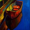 The painting «The boat» by Vladimir Grigoryan is an expressive image built on the contrast of textures and rich color combinations. The artist transforms a mundane object into a symbol of anticipation and silent calm. The deep, almost electric blue color of the water emphasizes the warmth of the ochre and brown tones of the boat, creating a sense of interplay between light and shadow. Grigoryan’s brushstrokes are energetic and free: they not only outline the contours but convey the rhythm of the waves and the stillness of the moored vessel.