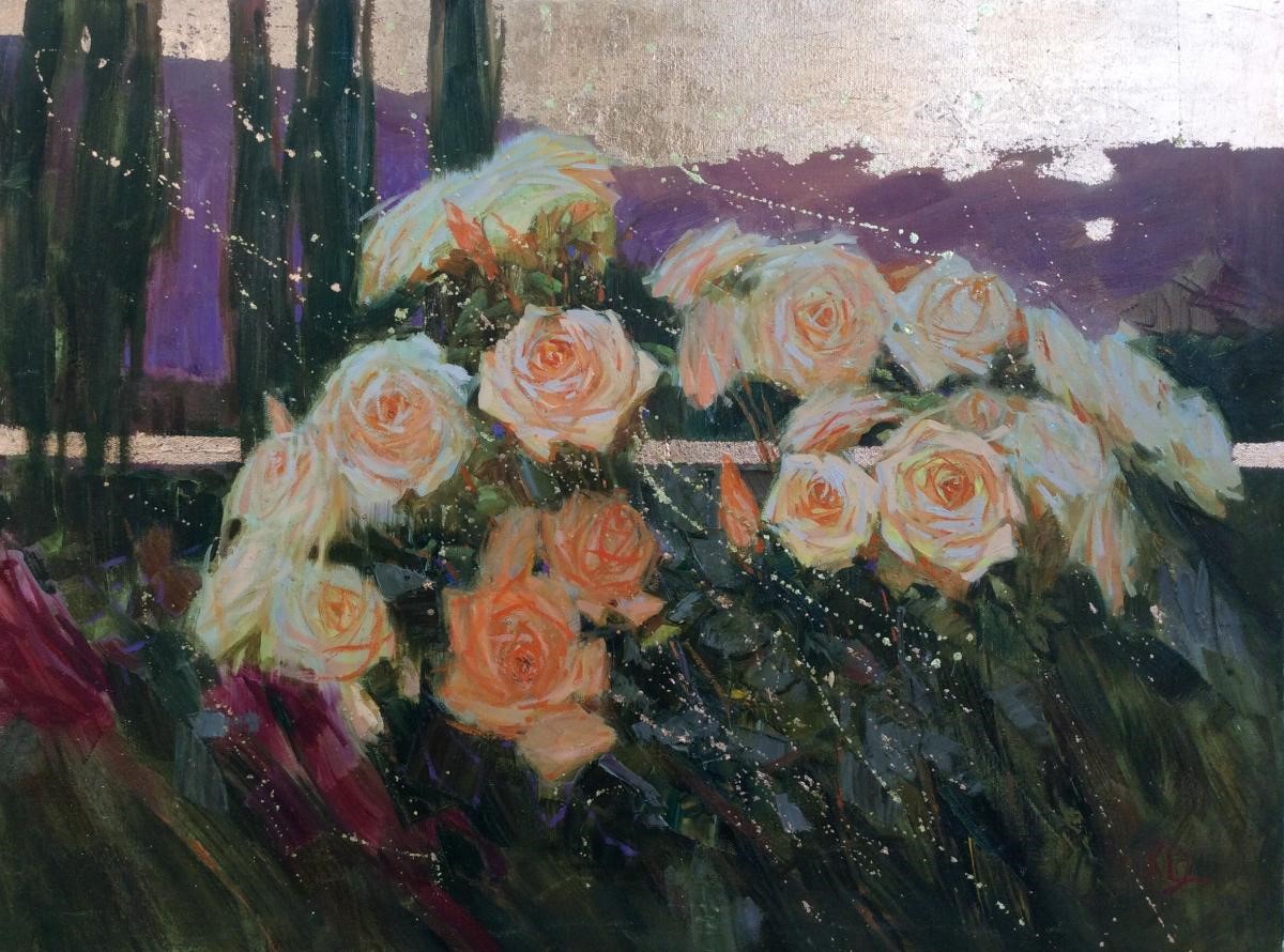 This original artwork "Evening roses" was created by the contemporary Russian artist Elena Komarova and is available for sale online.
