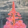 The painting creates a striking contrast between two worlds - the reality of the gray city and a bright, almost fantastical way of life. Against the background of a faded urban landscape, presented in muted gray tones, a bright plant of rich pink and orange shades rises. Its silhouette comes to life against the background of calm architecture with church domes, a muted haze, as if coming out of a world of dreams and hopes.