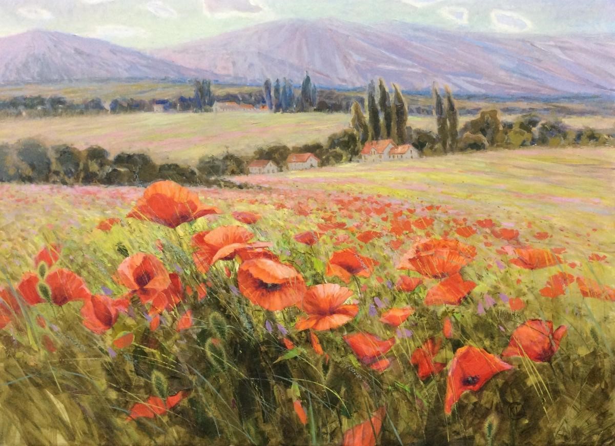 This original artwork "Poppy field" was created by the contemporary Russian artist Elena Komarova and is available for sale online.