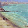 The painting by Rinat Biktashev «Ajman. The Gulf in the morning» is a fresh and vivid landscape capturing the atmosphere of a waking Eastern coast. The artist has captured the play of light and color characteristic of the morning hours in hot countries.